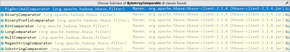 所有比较器均继承自ByteArrayComparable抽象类,常用的有以下几种: