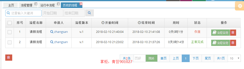 6.已办任务 :查看自己办理过的任务以及流程信息、流程图、流程状态(作废 驳回 正常完成)