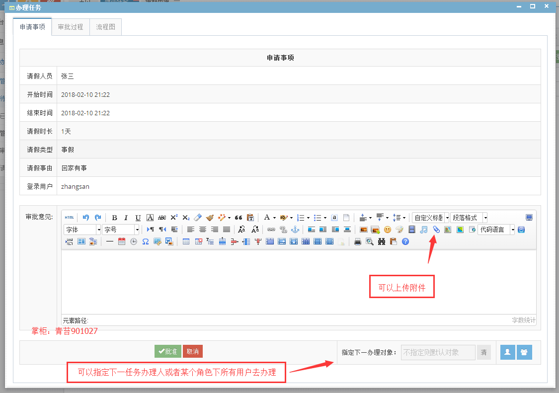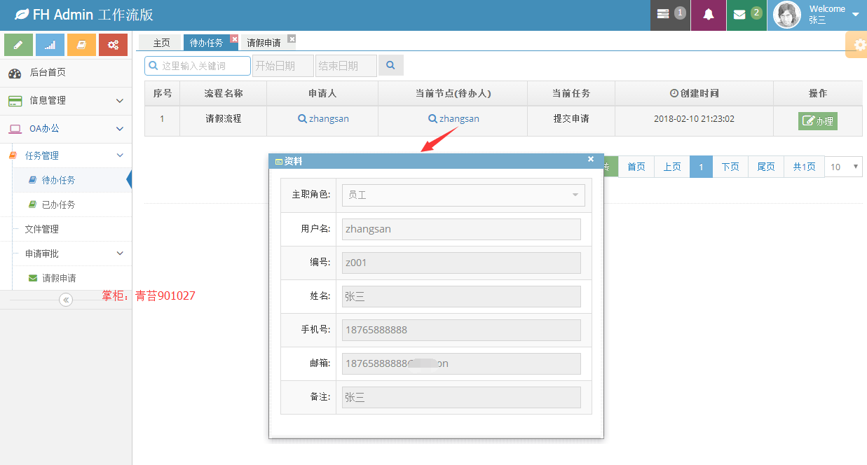 5.待办任务 :查看本人个人任务以及本角色下的任务、办理、驳回、作废、指派一下代理人