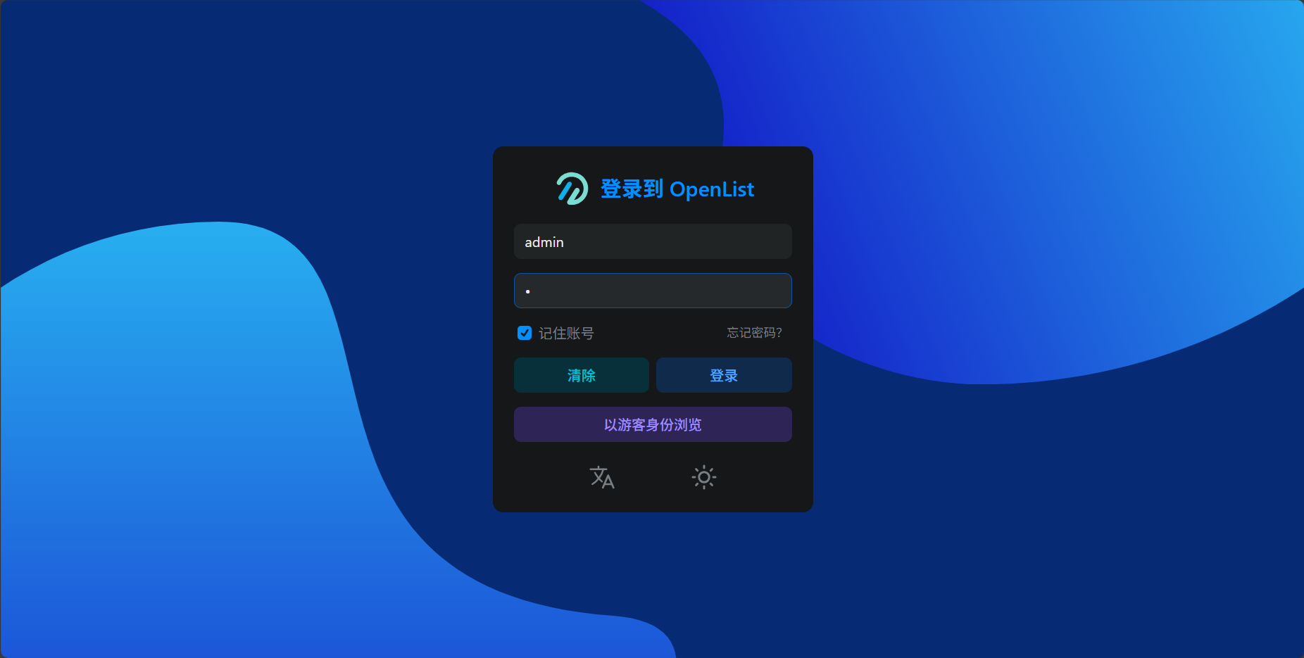 然后点击登录即可OpenList登陆后的初始页面,点击管理