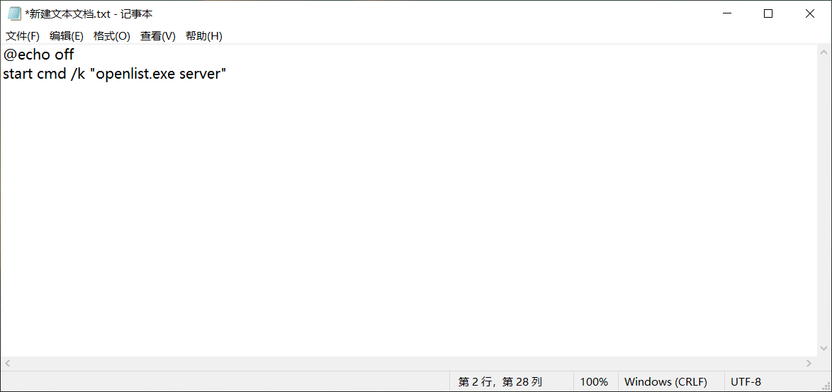 为了方便 openlist 每次的使用,我们可以写一个批处理文件,每次只需要双击该批处理文件,即可像平时使用软件一样快速启动 openlist(PS:当然启动后仍需要在浏览器中打开)