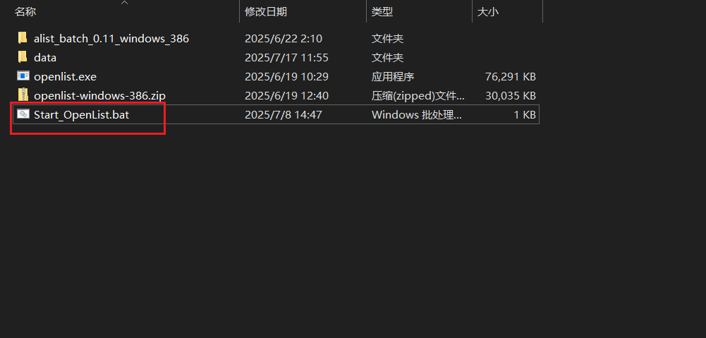 此时若想使用 openlist 就可以像平时使用软件一样,双击 .bat 文件来实现 openlist 引擎的启动