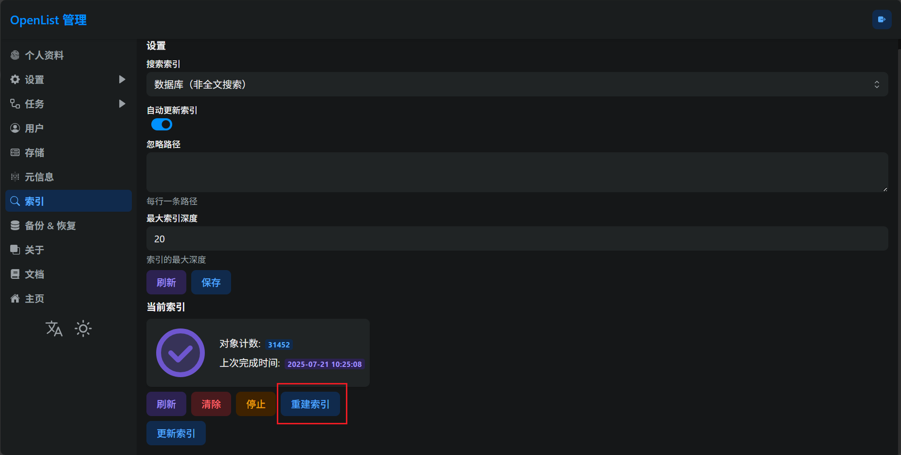 这一步构建索引的过程会根据挂载网盘中的文件数量有长有短,耐心等待便是
