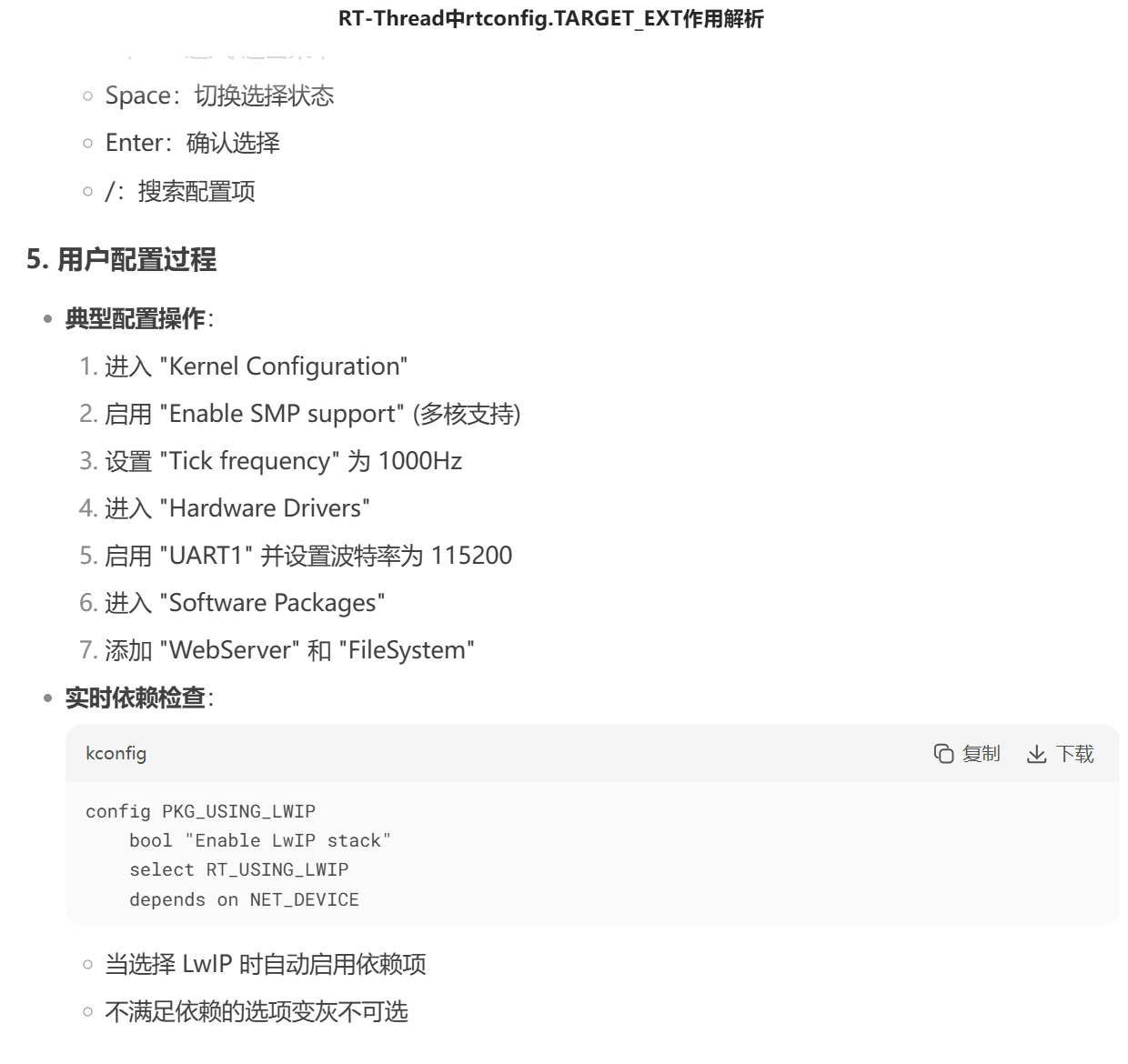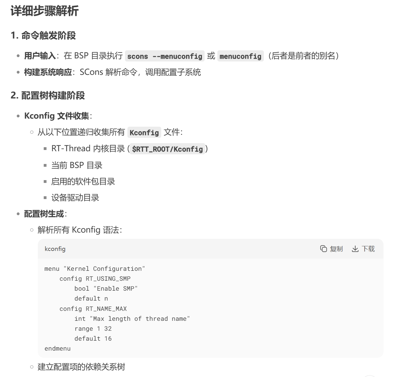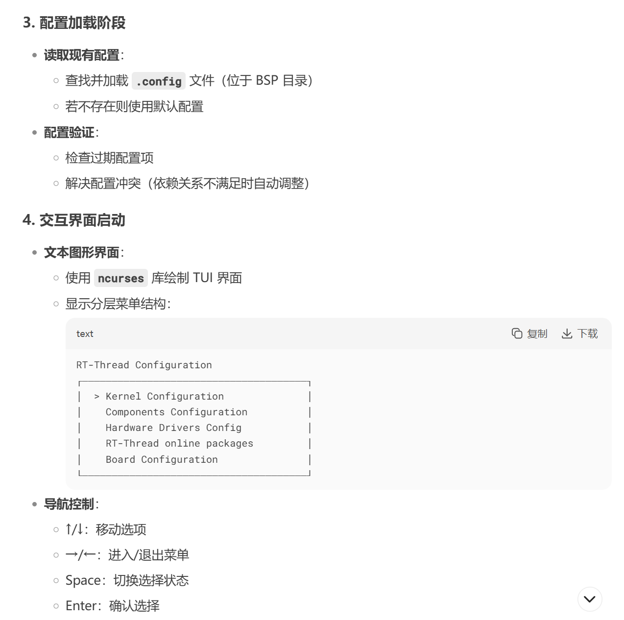 - **收集Kconfig文件**:从RT-Thread的各个组件、BSP、软件包中收集`Kconfig`文件。这些文件定义了可配置的选项及其依赖关系。