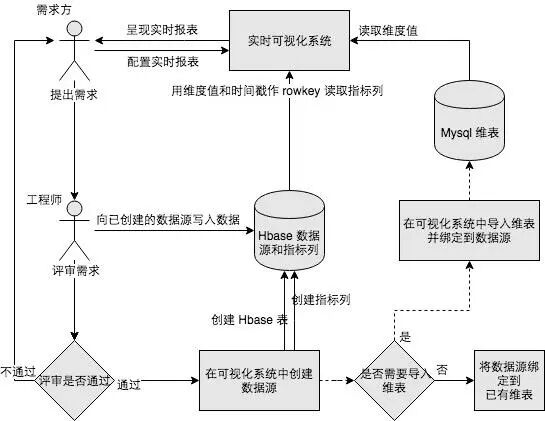 指标口径管理依赖指标系统,指标可视化依赖可视化系统,我们通过下图的需求开发过程来讲解如何将三者联系起来。