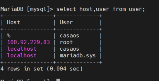 可以看到原先的root账号能被所有host访问,下面进行修改。