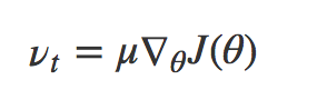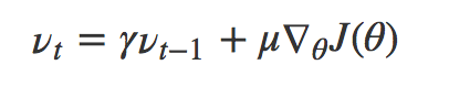 为了克服SGD振荡比较严重的问题,Momentum将物理中的动量概念引入到SGD当中,通过积累之前的动量来替代梯度。即: