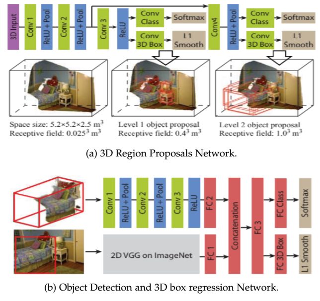 目标检测涉及识别目标实例和类别。通常,对象检测算法输出对象的位置(由围绕对象实例可见部分的2/3D边界框定义)和类,例如沙发、椅子。该课题对汽车自动驾驶、增强和虚拟现实等应用具有重要意义。然而,在诸如机器人导航等应用中,我们需要所谓的“amodal目标检测”,它试图找到一个目标的位置以及它的完整位置只有一部分可见时三维空间中的形状和方向。在这一部分中,回顾了主要针对室内场景的2-2.5-3D目标检测方法。观察了手工特征在目标识别中的作用以及最近向基于深度神经网络的区域建议(对象候选)生成和目标检测管道的过渡。除了监督模型外,还回顾了无监督三维目标检测技术。现有的目标检测技术主要有:基于anchor、anchor-free以及one-stage和two-stage方法。