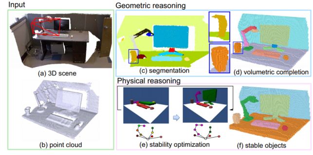 场景是视觉世界的静态图像。然而,当人类看到静态图像时,他们可以推断场景中隐藏的动态。例如,从一个有球员和一个球的足球场的静止图像中,我们可以了解预先存在的运动模式,并猜测在场景中可能发生的未来事件。因此,我们可以计划我们的行动,并作出明智的决定。根据人类的这种认知能力,计算机视觉已经努力发展出对场景潜在物理特性的洞察。这些包括从静态场景估计当前和未来的动力学、理解对象的支持关系和稳定性、体积和遮挡推理。这些算法的应用包括机器人的任务和运动规划、监视和监视。