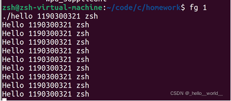 - 生成子进程,在shell中输入指定命令shell调用fork函数为hello生成进程。