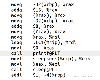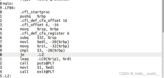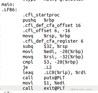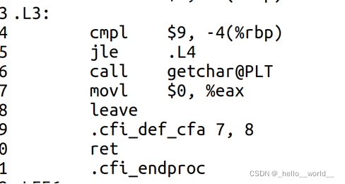 - 编译,hello.i通过编译器的处理,被翻译成了汇编语言程序hello.s