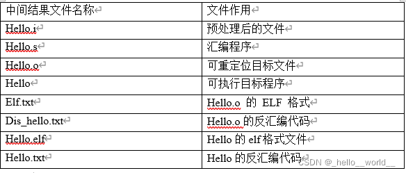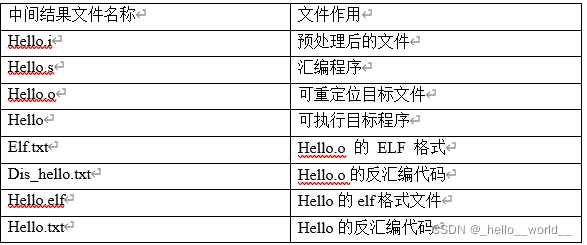 - 预处理,hello.c文件通过cpp的预处理,得到了扩展后的源程序文件hello.i