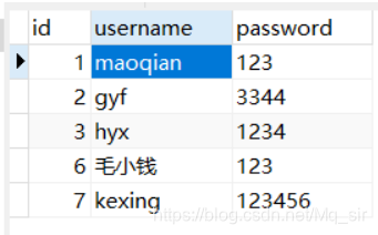 创建一个firend_mq数据库,建立一张表为 users ,并插入一些数据