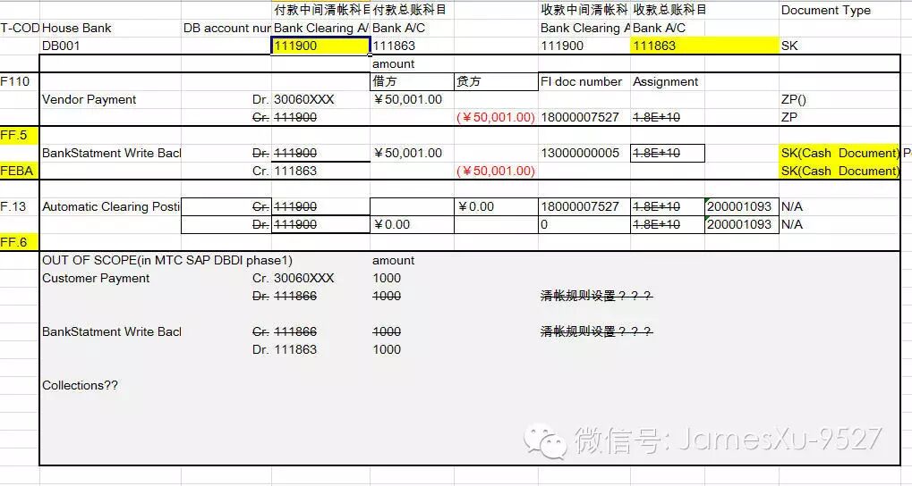11).SAP系统中通过F.13,FEBA等记账流 将中间网银科目核销,借贷流如下: