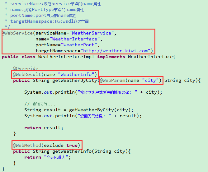 作用: 通过注解,可以更加形像的描述Web服务。对自动生成的wsdl文档进行修改,为使用者提供一个更加清晰的wsdl文档。