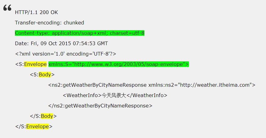 (1)SOAP封装(envelop),封装定义了一个描述消息中的内容是什么,是谁发送的,谁应当接受并处理它,以及如何处理它们的框架;
