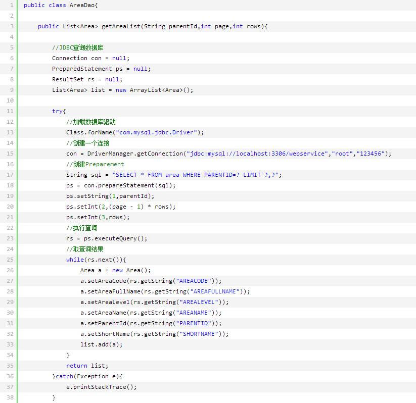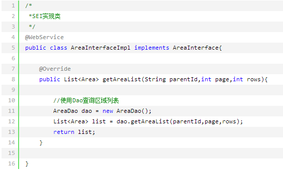创建区域查询服务系统,对外发布WebService服务,供客户端调用,根据parentid查询区域信息,返回区域信息列表,并支持分页。