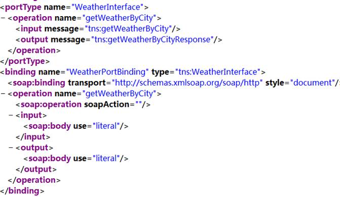 3、Port节点对应一binding节点。每个binding节点对应一个PortType