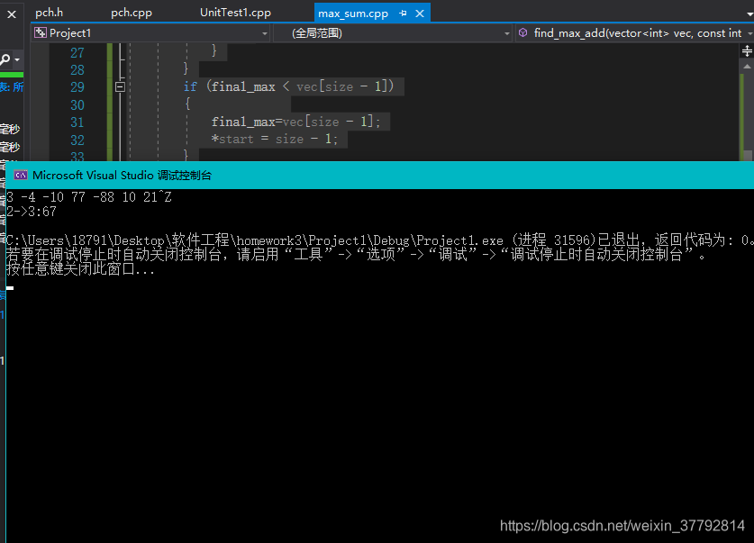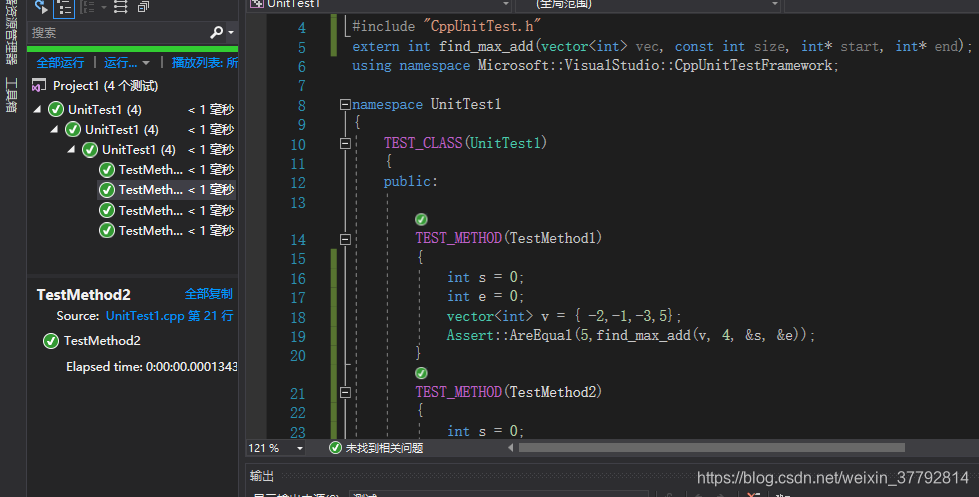 Assert::AreEqual(5,find_max_add(v, 4, &s, &e));