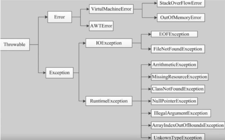 - Error 类对象由Java 虚拟机生成并抛出,大多数错误与代码编写者所执行的操作无关。