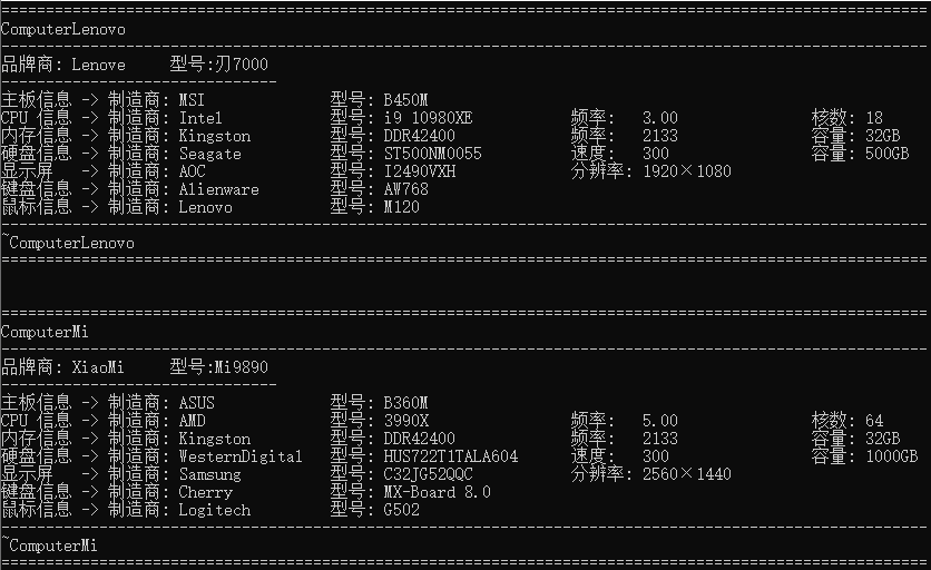 从单元测试代码当中,可以了解到,业务逻辑不需要关心电脑各个组件的选型以及其具体的实现细节,只需要根据使用场景来选择合适的电脑配置,从而使用里面已经确定好的组件。