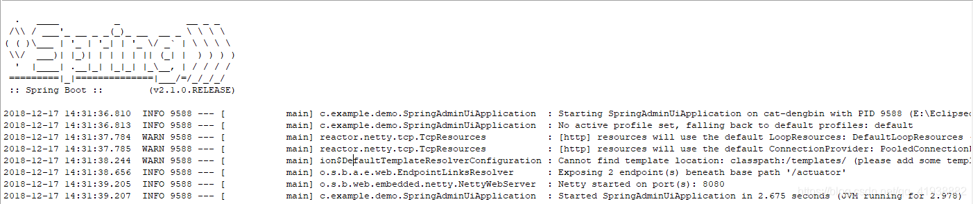 服务器还没启动就报错,是因为jar包的版本没对上,看的视频是SpringBoot2.0 ,现在已经是2.1.7了 将spring-boot-admin-starter-server版本改为最新就ok了