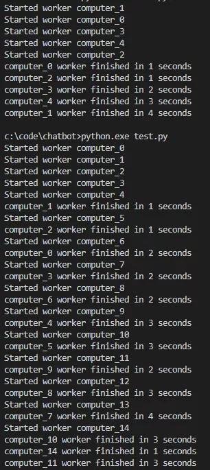 print(f'{name} worker finished in {worker_time} seconds') if __name__ == '__main__':