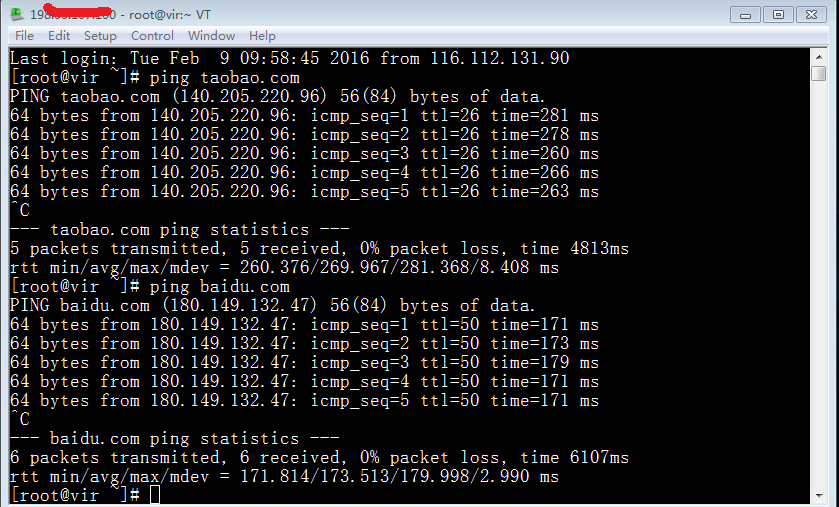 下面是从服务器ping国内网站淘宝和百度的时间