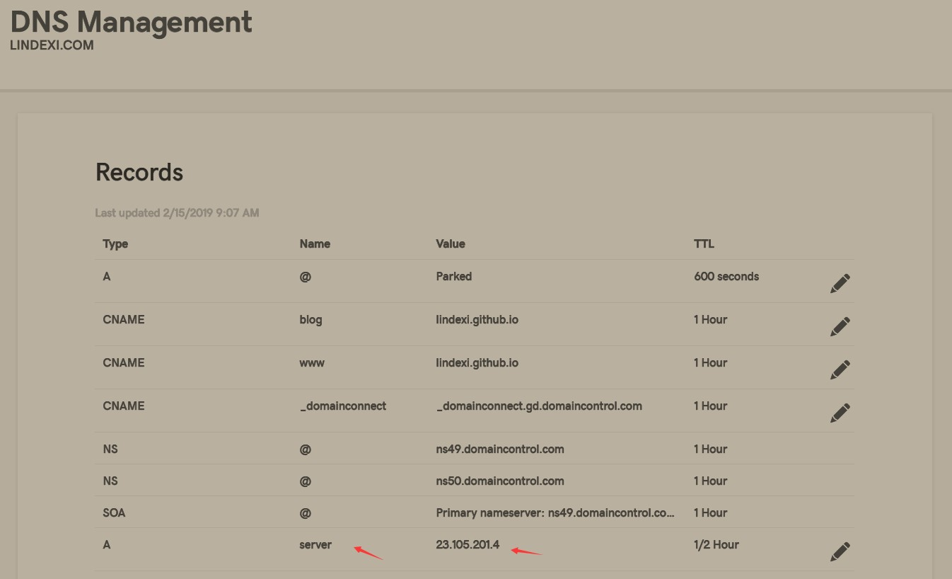这里就让 dns 的 server.lindexi.com 指向我的服务器 ip 通过访问 http://server.lindexi.com 就可以访问服务器