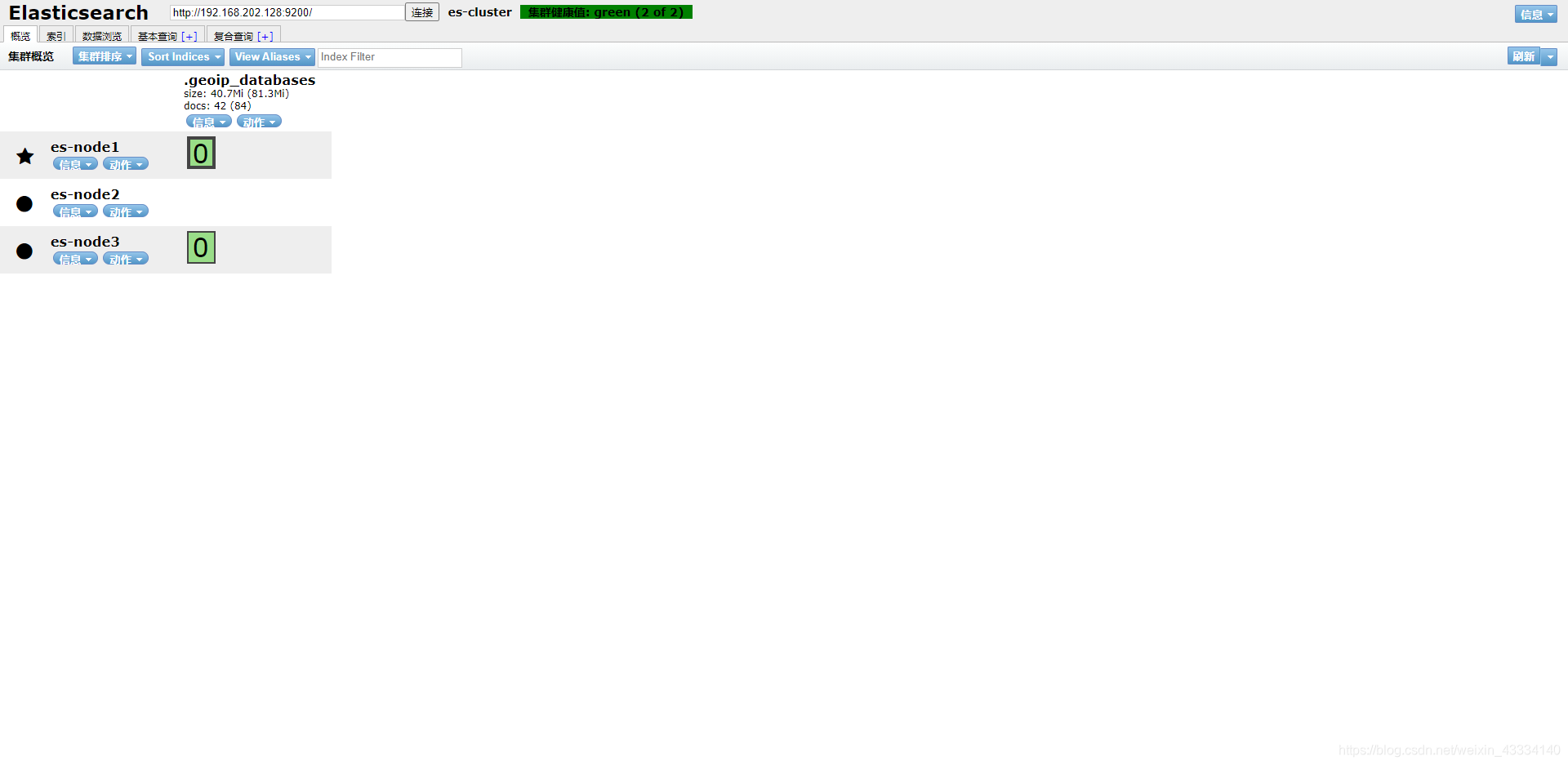 es 启动较慢,别着急 ,访问接口 http://192.168.202.128:9200/_cat/nodes