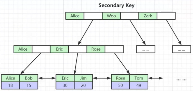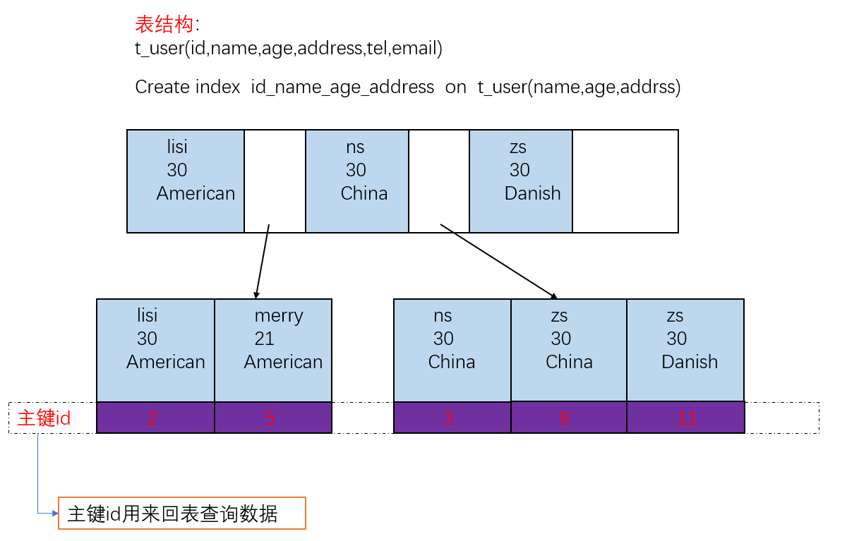 如图:先定位id主键值,再回表查询(通过id值查询–》聚集索引)