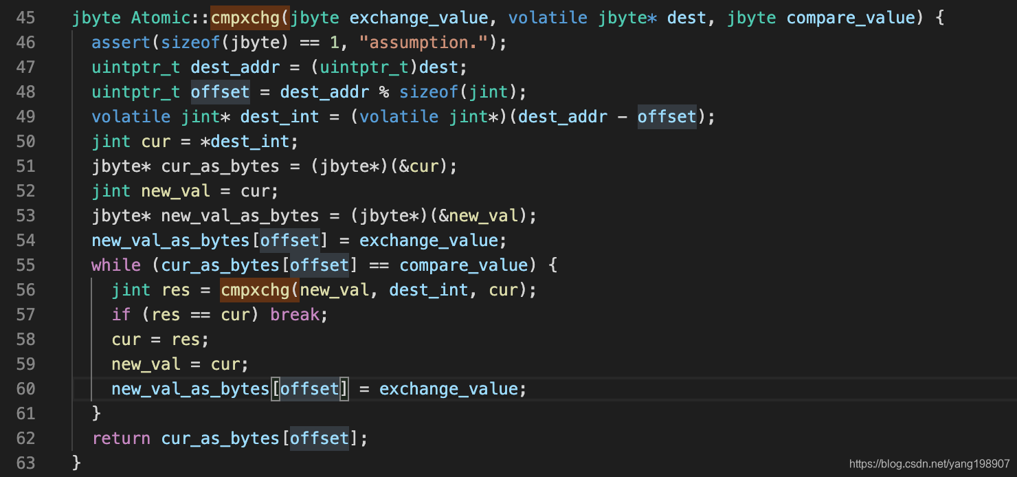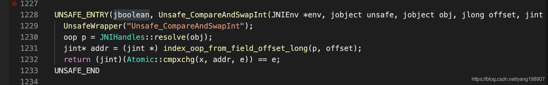 下载一下Hotspot源码,看到compareAndSwapInt实现的源码如图所示,发现最终调用了Atomic::cmpxchg(x, addr, e)方法。