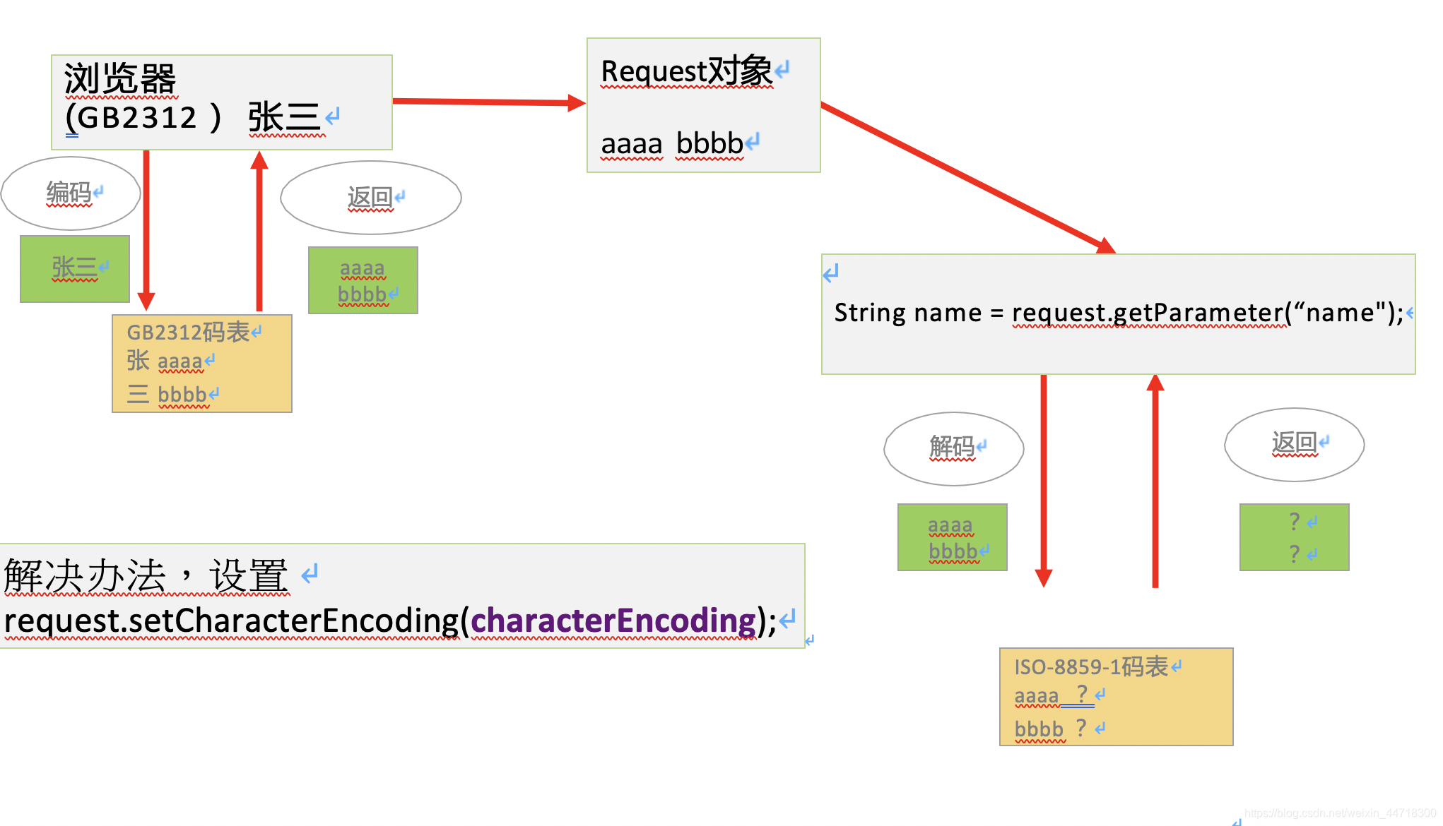 <一>乱码问题(设置tomcat uriencoding=’utf-8’); 统一设置编码过滤器 <1>get请求: request.setCharacterEncoding( ...