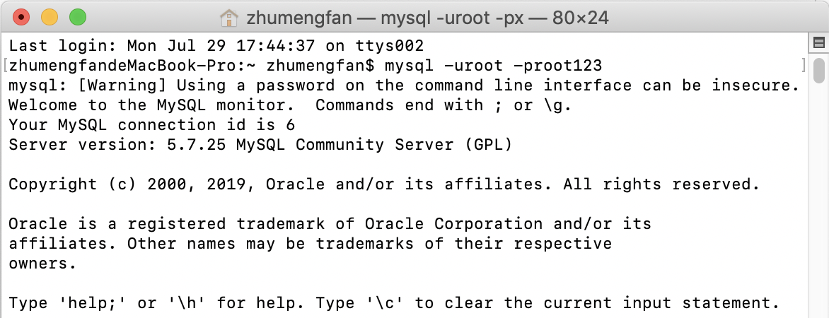 mysql -uroot -proot123 进入本地数据库