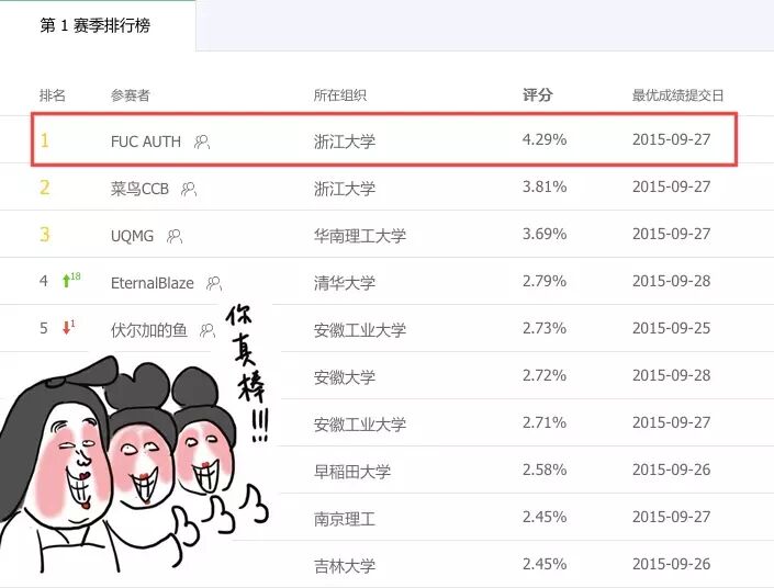 由于我们团队也差不多都是新手,能取得这样的成绩,确实激励我们,让我们更有信心面对将来的挑战。在高兴的同时我们也深刻地意识到到目前比赛刚开始,许多大牛还未真刀真枪开始干,我们现在取得的成绩也不可骄傲。