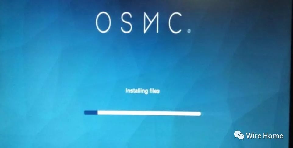 上电后开始安装OSMC系统,将树莓派连接到显示器上,如果遇到过黑屏的问题,记得改config.txt配置文件,见我的这篇文章 树莓派连接显示器不亮屏的解决方案,开机即可开始安装osmc(kodi), 这一切都是自动的,大约需要20分钟,安装完成后OSMC会自动启动。安装过程会有如下提示: