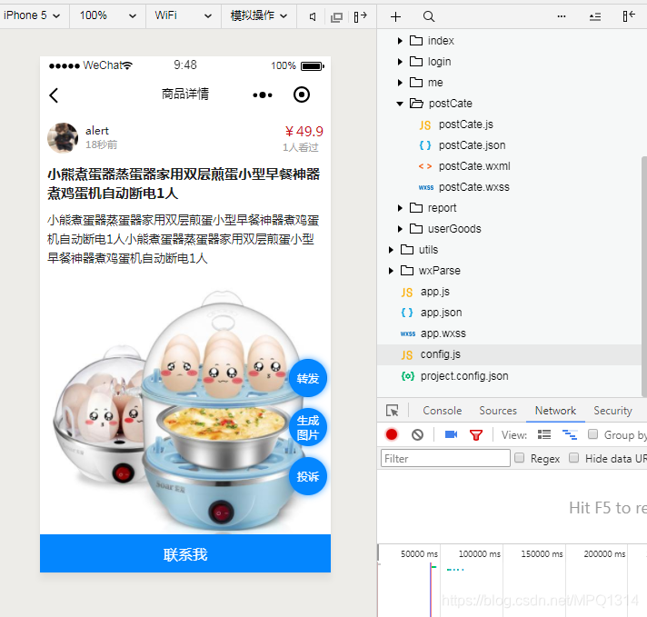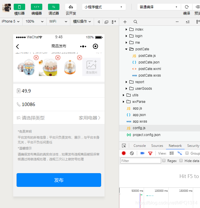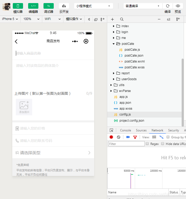 最近做了一个小程序,主要是二手闲置免费信息发布系统的功能,里面包括了登录,发布商品,商品管理,违规投诉,canva商品海报生成,分享等一些基础的功能,可以说代码都是自己辛辛苦苦写出来的。可作为毕业设计、期末作业,下面就看下截图吧