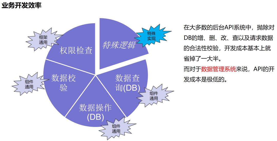在实际项目开发过程中,对开发效率提升最大的,无疑是符合系统业务场景的公共组件能力,这点也正好应证了Rob Pike那句话(Less is lessor Less is more),真正的高效率开发,是配置化的,并不需要写太多的代码,甚至根本就不需要写代码,即可完成逻辑实现,而这种方式对于后期的维护成本也是最优的,因为做到了高度的统一。