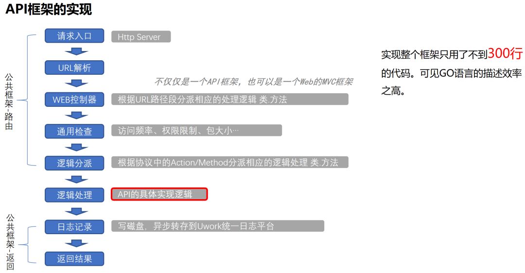 缩短API的响应时长,解决批量请求访问超时的问题。在Uwork的业务场景下,一次API批量请求,往往会涉及对另外接口服务的多次调用,而在之前的PHP实现模式下,要做到并行调用是非常困难的,串行处理却不能从根本上提高处理性能。而GO语言不一样,通过协程可以方便的实现API的并行处理,达到处理效率的最大化。