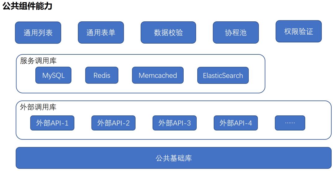 除此之外,通用组件能力是实现功能量产的根本,对开发效率会是质的提升。组件化的开发模式会帮忙我们将问题的解决能力从一个点上提升到一个面上。以下会重点介绍几个通用组件的实现,有了它们的存在,才能真正的解放程序员的生产力。而这些强有力的公共组件在Golang中实现起来并不复杂。同时,结合Golang的并发处理能力,相比于PHP的版本实现,执行效率也会有质的提升。这是组件能力和语言效率的完美结合。