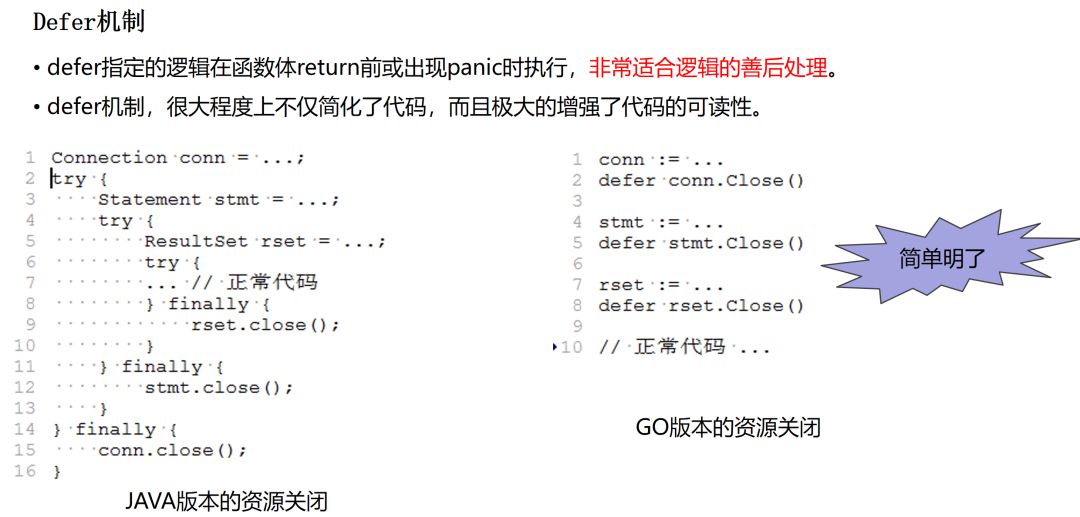 可以说,defer是继goroutine和channel之后的另一个非常重要、实用的语言特性,对defer的引入,在很大程度上可以简化编程,并且在语言描述上显得更为自然,极大的增强了代码的可读性。