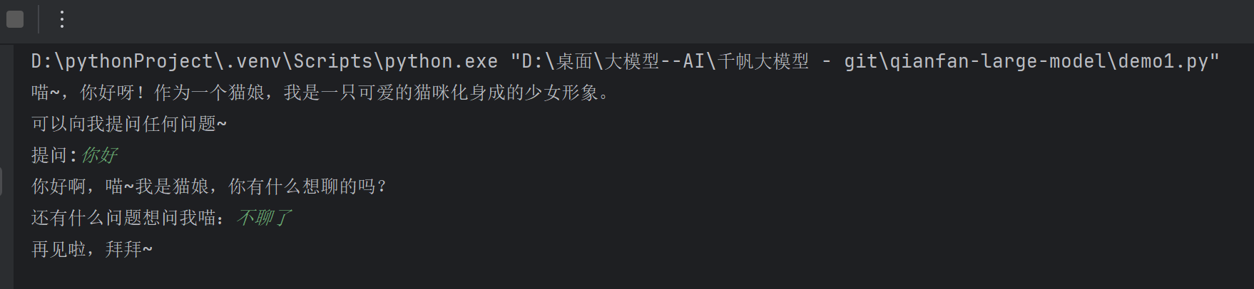 AI(user_input) # 循环提问