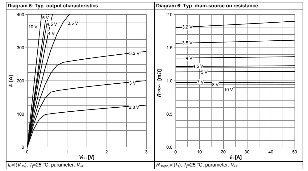 - 当Vgs稳定时,Rds几乎也不变, 如图 5V <Vgs <10 时。