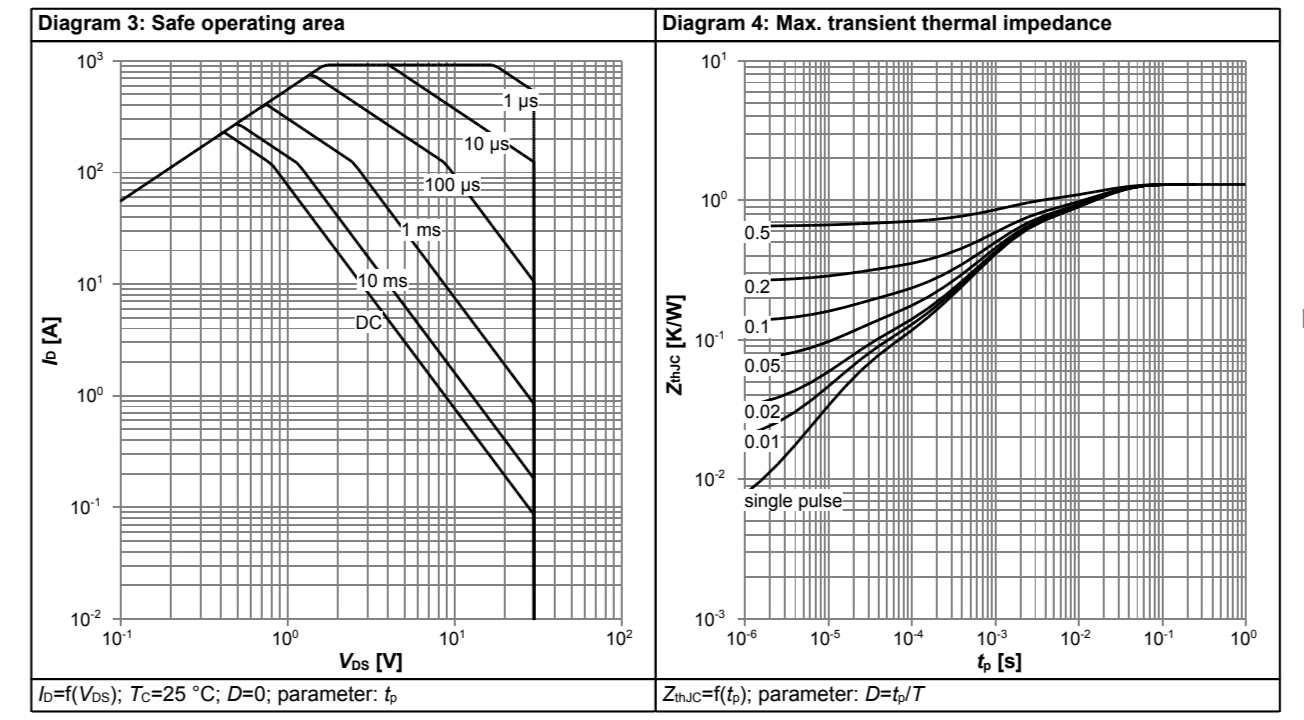4.Safe Operating Area(正常工作区) 与 Max. Transient Thermal Impedance(最大瞬时热阻抗):