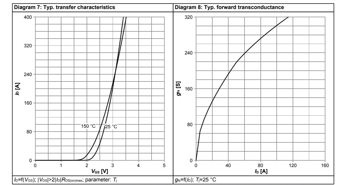 Tj作参数变量,条件是 |Vds| > 2 × |Id| × RDS(on)max; - 当Tj=25゜(近似常温for正常工作)时,