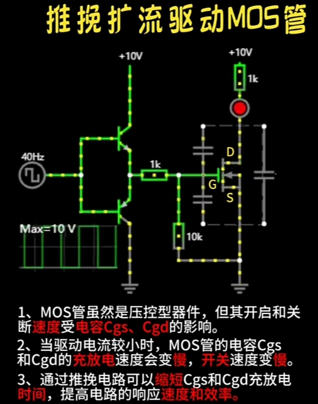 FET虽是"压控型器件", 但“开启和关断速度”受 FET结电容 \(\large C_{GS}\)、\(\large C_{GD}\) 的影响。