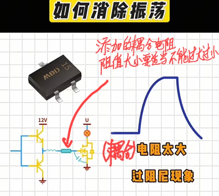 耦合电阻过小,产生欠阻尼现象,则使\(\large V_{GS}\)驱动信号由方波起振荡。