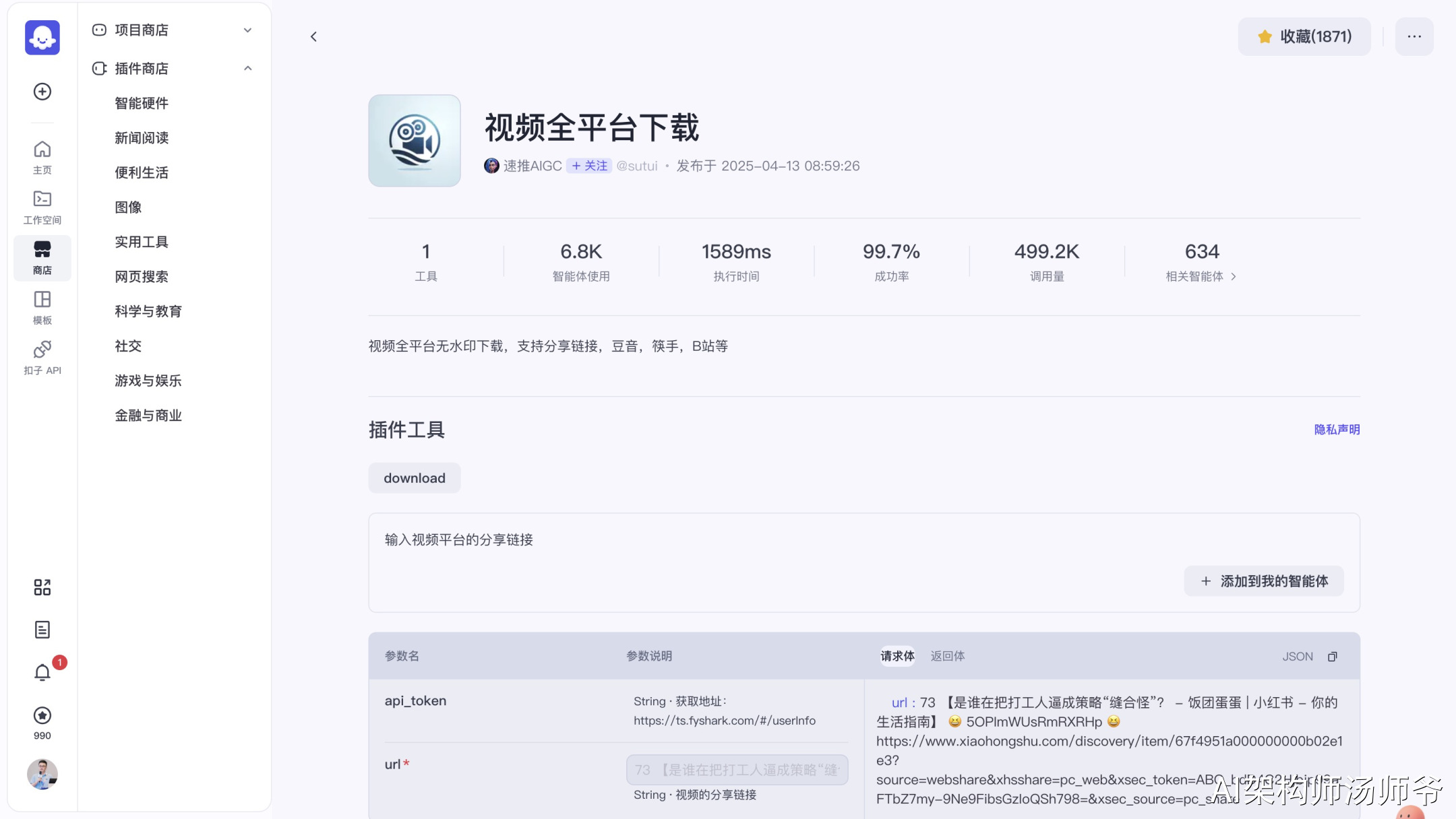我们将使用【视频全平台下载】插件的download功能。通过这个功能,我们可以下载短视频。