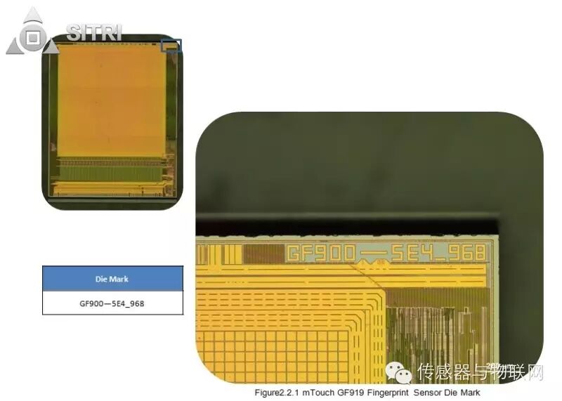 指纹传感芯片Die Mark为GF900-5E4_968。