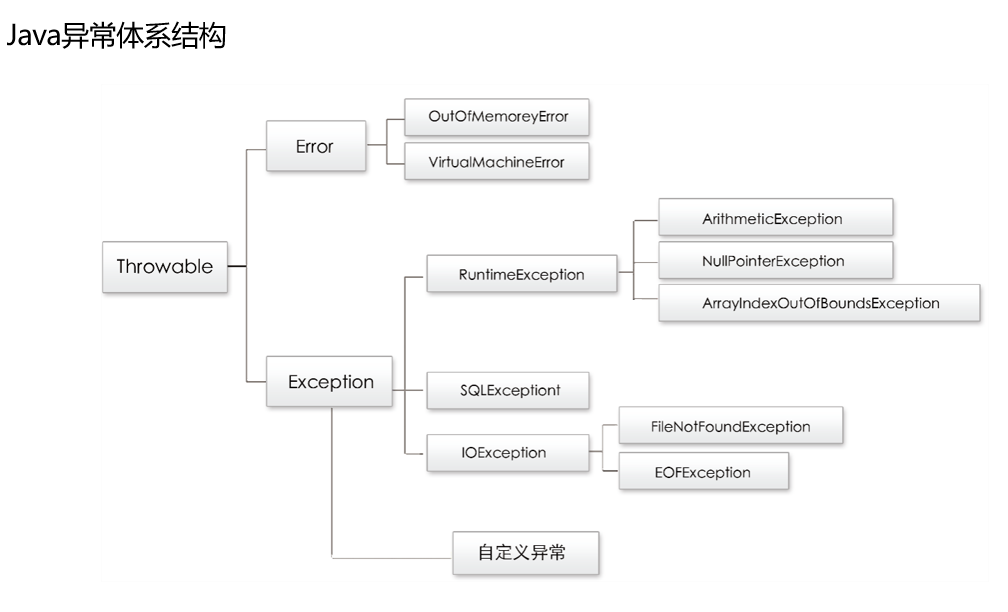 一.基本概念 Throwable是所有异常的根,java.lang.ThrowableError是错误,java.lang.ErrorException是异常,java.lang.Exception ...